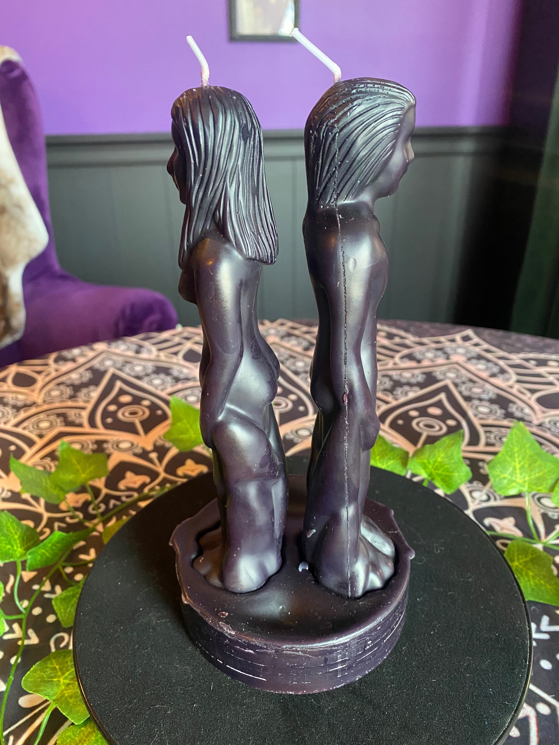 The 8" Mixed Color Black Male & Female Separation Candle offers a unique representation for rituals and spellwork focused on separation or breaking ties. Made from paraffin wax.