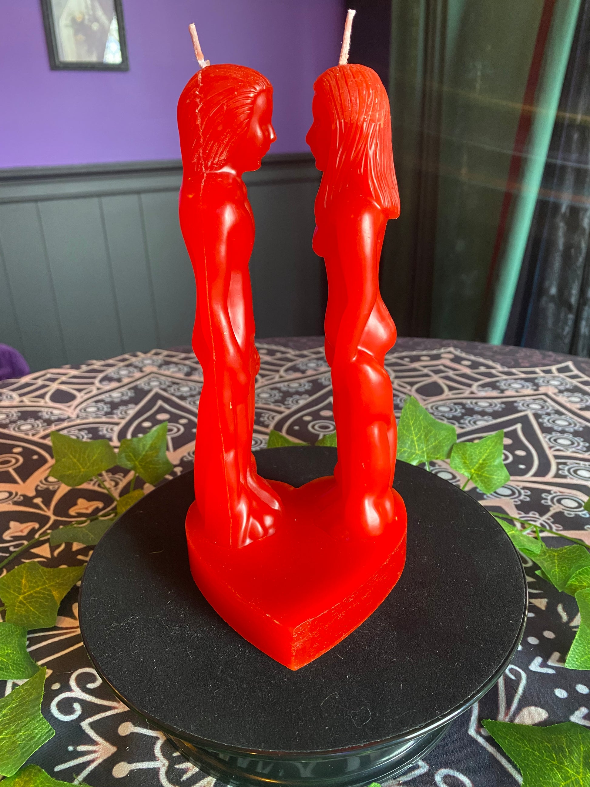 The 8" Red Female & Male Face to Face Candle is a potent symbol of passion, desire, and intense connection. Crafted to portray a female and male figure facing each other, this candle embodies the fiery energy of romantic love and attraction. The vibrant red hue signifies passion, courage, and vitality, making it an ideal choice for rituals and spellwork aimed at igniting or strengthening romantic relationships, enhancing sexual energy, and fostering deep emotional bonds.