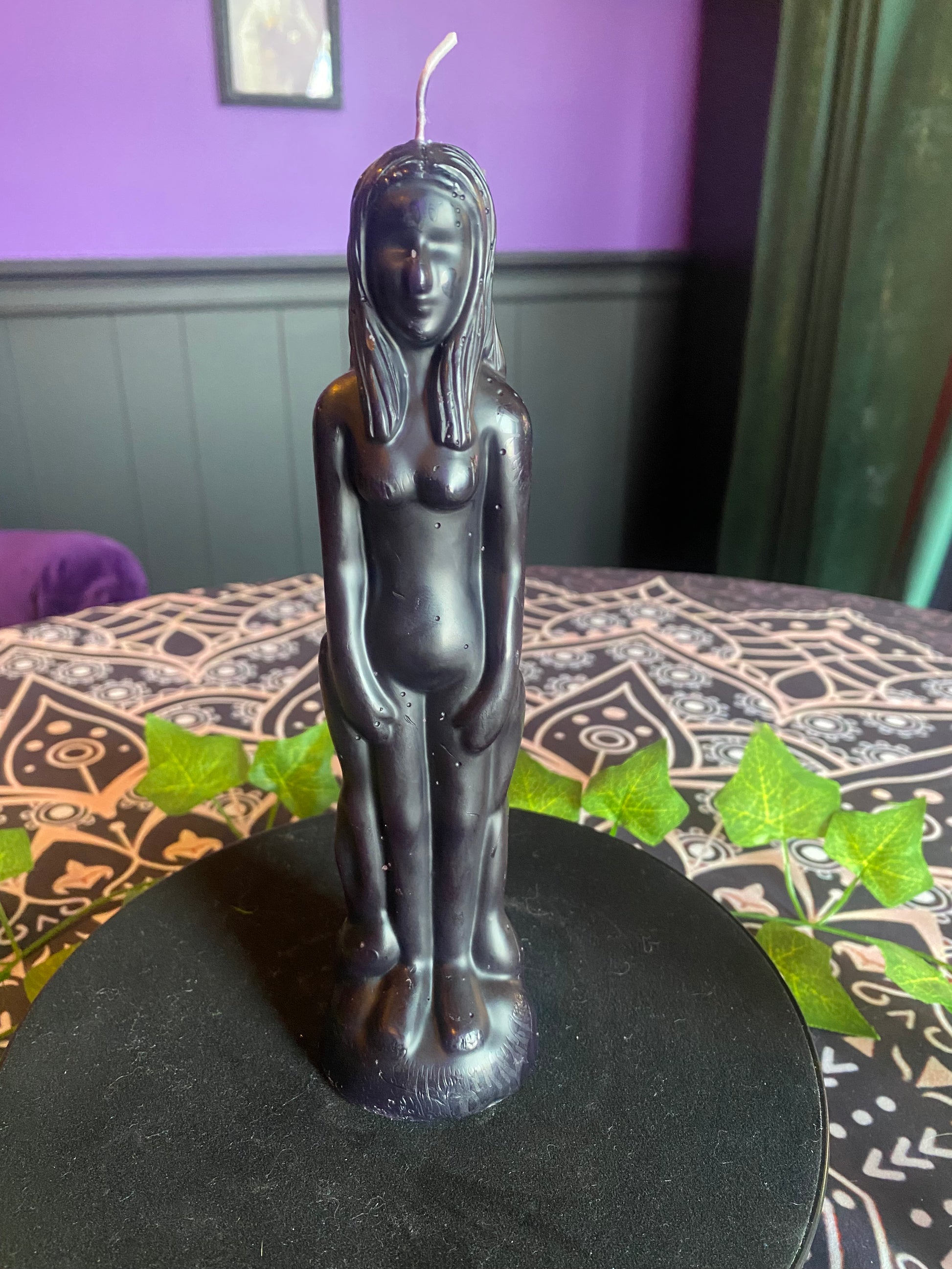 The 8" Female Figure Candle in black is a potent tool for ritual work and spellcasting. Crafted to represent the feminine form, this candle is imbued with the energy of mystery, protection, and empowerment. Black, symbolizing the depths of the unknown, is often associated with banishing negativity, breaking hexes, and embracing inner strength. Whether used in solitary practice or as part of a group ritual, this candle can serve as a focal point for intentions related to transformation, resilience, and the release of obstacles. Made from paraffin wax.