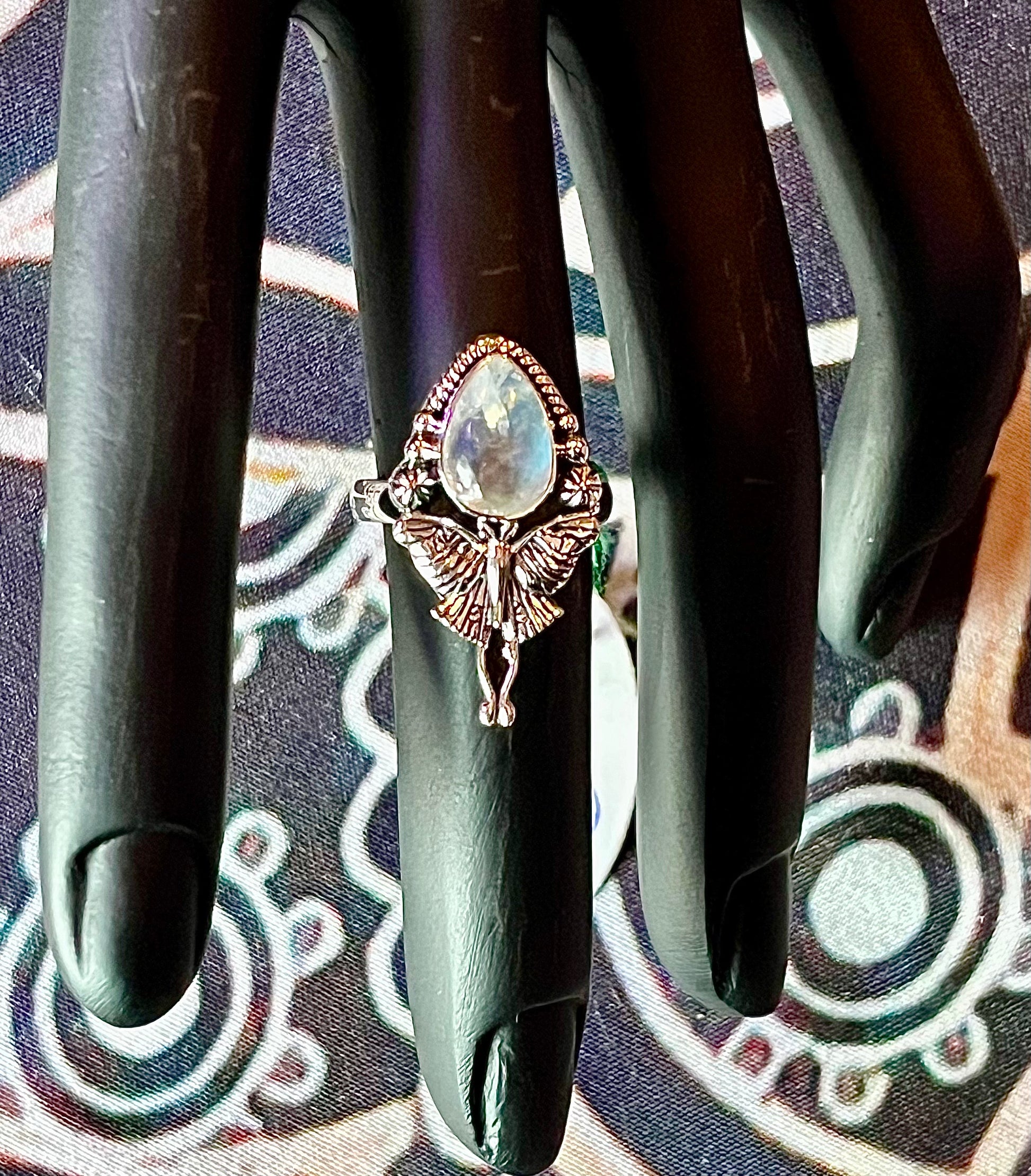 Lunar Moth Ring – Sterling Silver with Moonstone