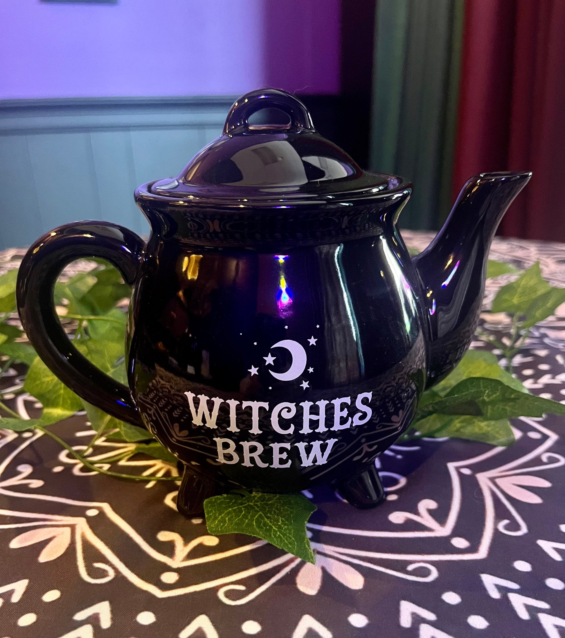 Black ceramic cauldron shape with gloss finish and lid. Easy pour spout