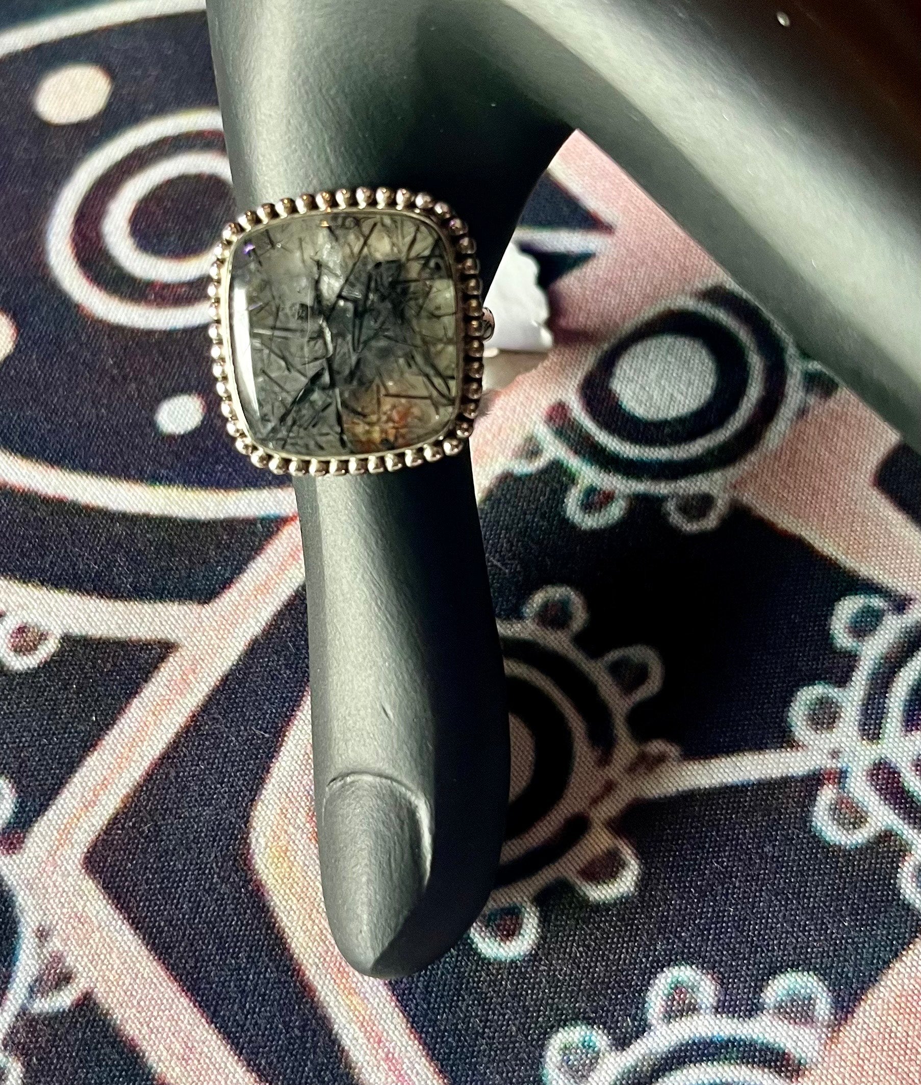 Large Rutilated Quartz Square Ring